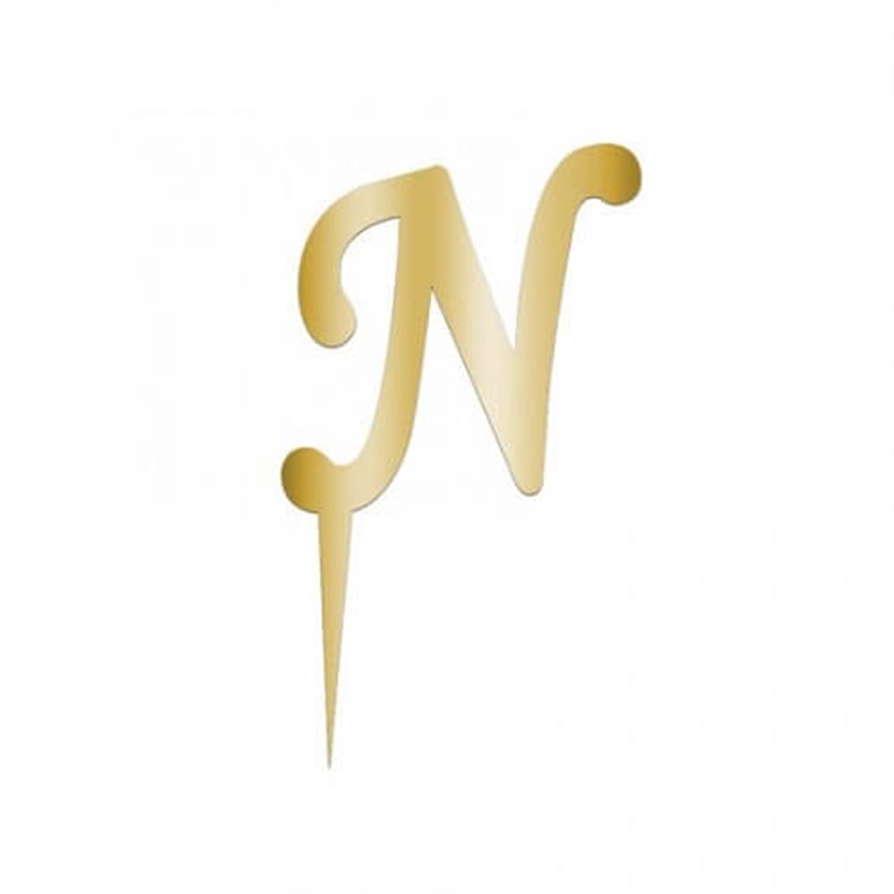 Pleksi Harf Rakam ve YazılarPasta Üstüne Pleksi Harf N GoldYerli Üretim